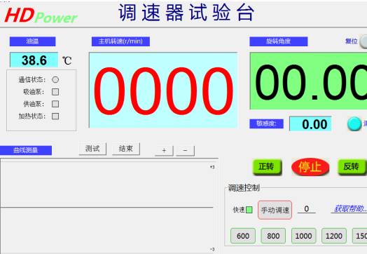 7、打開測(cè)試界面,選擇手動(dòng)調(diào)速,這是先通過(guò)調(diào)速旋鈕緩慢加注到200轉(zhuǎn)/分鐘;查看有無(wú)異常出現(xiàn),如果沒有就可以進(jìn)行檢測(cè)和調(diào)試。