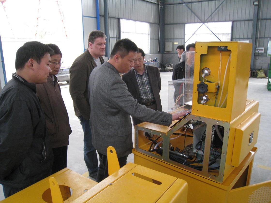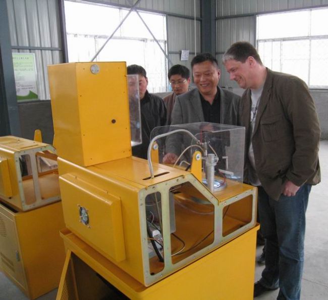 圖二、外商正在調(diào)校CRI-200型高壓共軌噴油器試驗設(shè)備